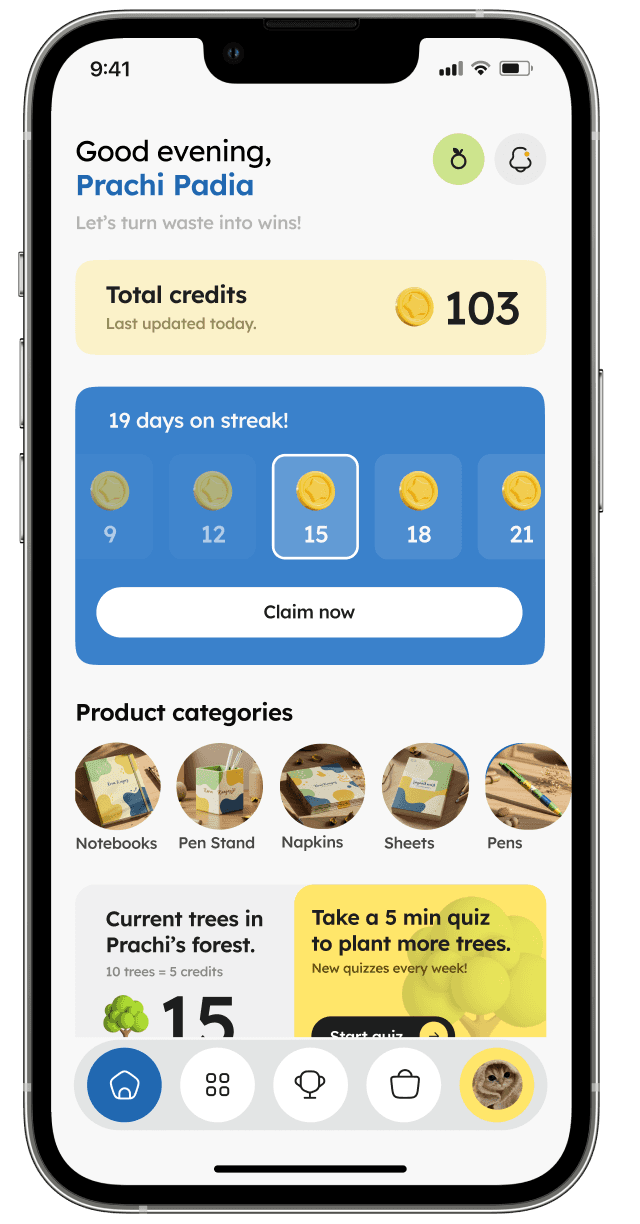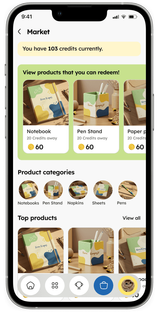 Shaped the experience direction for Kora Kagaz, translating research insights into a clear, gamified recycling flow.
