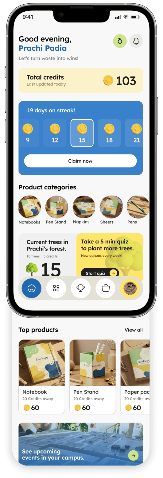 A gamified campus experience that makes you recycle used paper and see your impact.