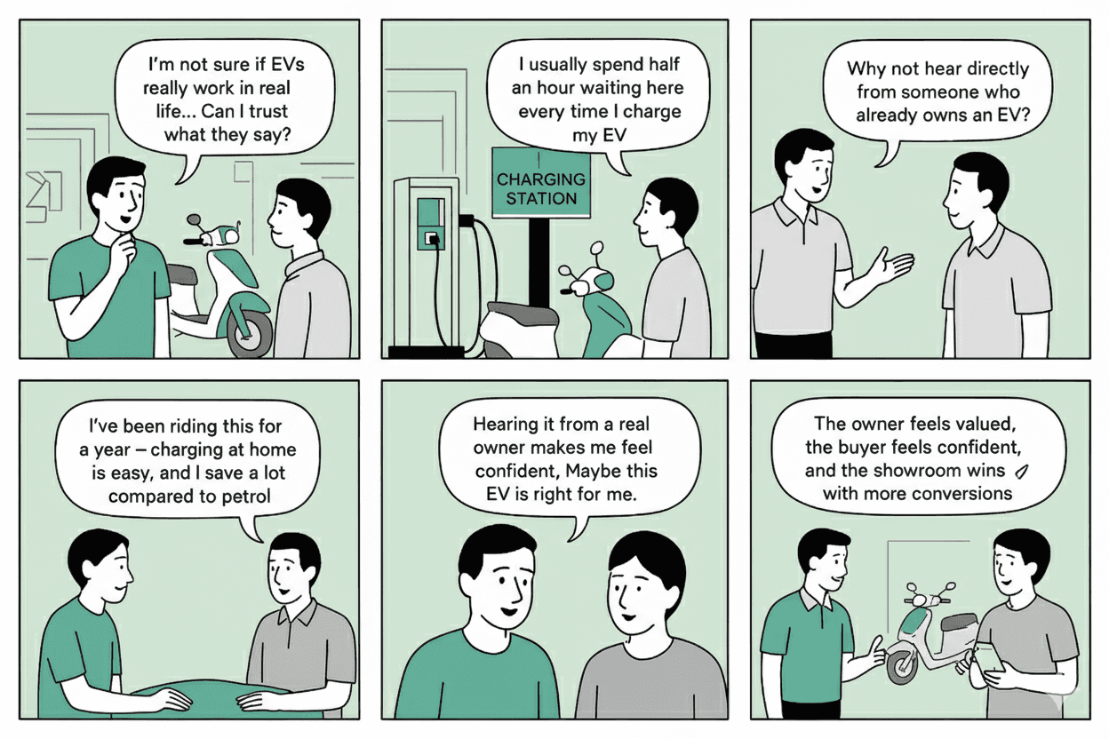 With dealers, subsidies, charging, and service systems working in silos, users face confusion and trust gaps. Over time, this uncertainty makes EV adoption feel risky and overwhelming.